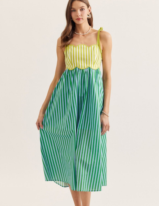 Summer Scallop Neckline Midi Dress