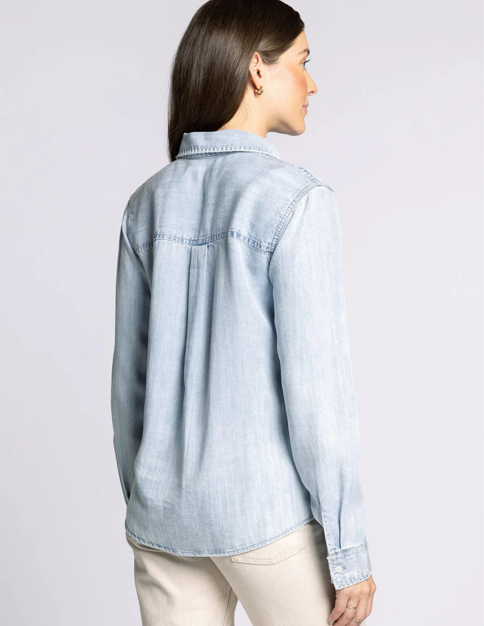 Meet your new favorite shirt—the Annalise in Claudia Wash. We took the timeless button-down and gave it a playful upgrade with luxe tencel fabric that feels as good as it looks. The signature whipstitch detailing adds just enough personality to make this classic feel fresh and unexpected. Collared neckline, full button front, and a handy chest pocket make it endlessly versatile. Effortless style that works as hard as you do.
