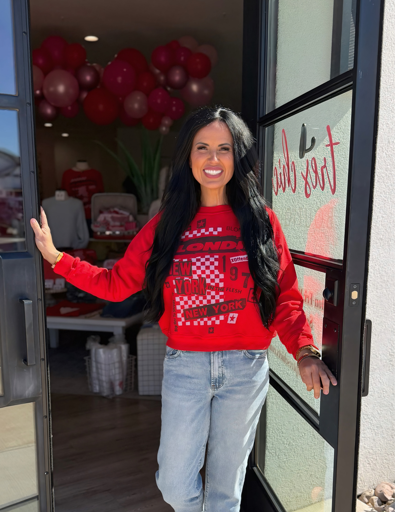 Blondie Self- Titled Shrunken Raglan Sweatshirt- Ruby Red