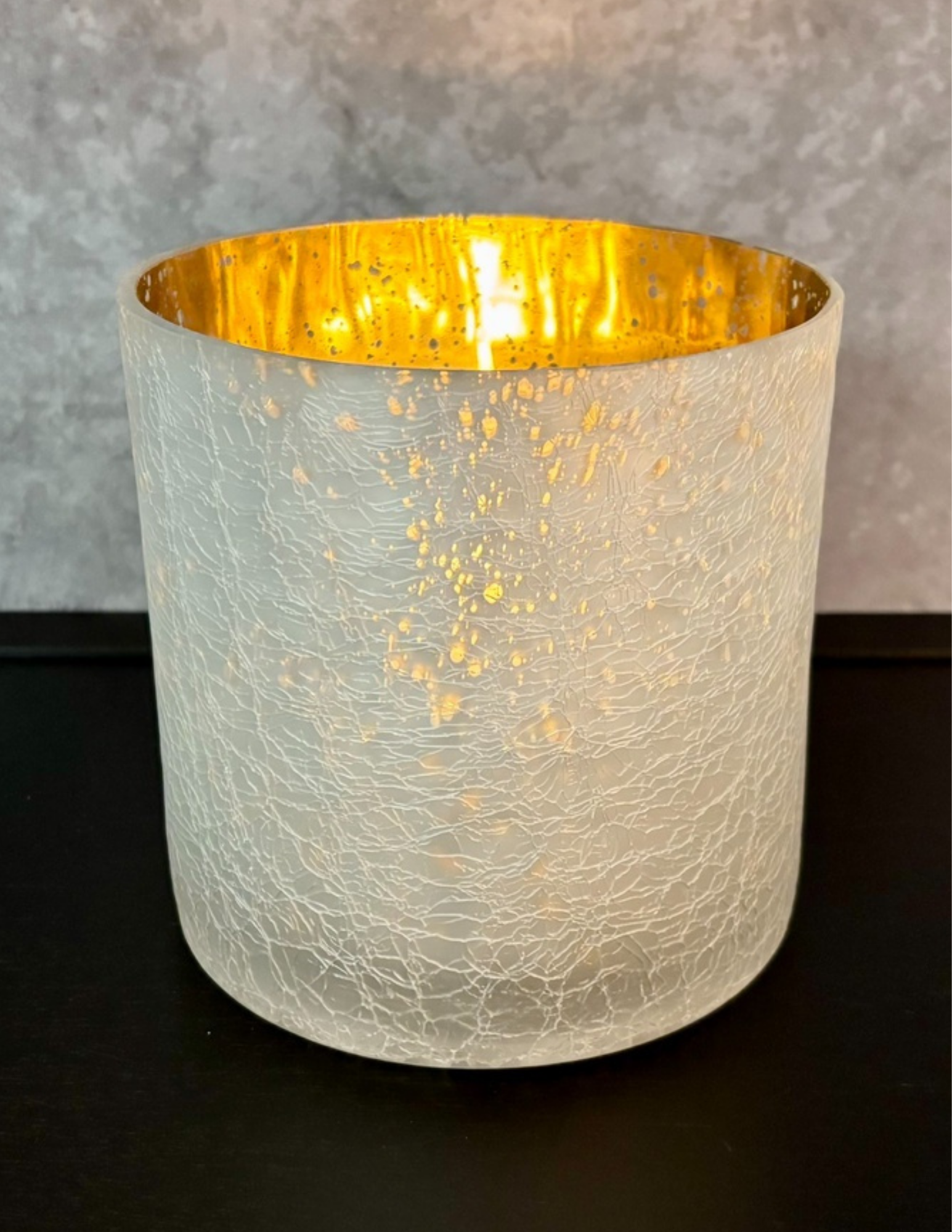 Bring warmth and shimmer to any room with this stunning 6" Copper Frosted Vase from The Light Garden Collection. Its frosted white exterior pairs perfectly with a mesmerizing copper crackle interior that catches the light beautifully. Whether displayed solo on a shelf or styled with our Mini Flame Illusion or Votive Candles, this versatile piece adds instant sophistication to your décor. A decorative treasure that transforms any tabletop into a gallery-worthy moment. Perfect for adding that "wow factor" to your home. *Note: Not water safe—display only.*