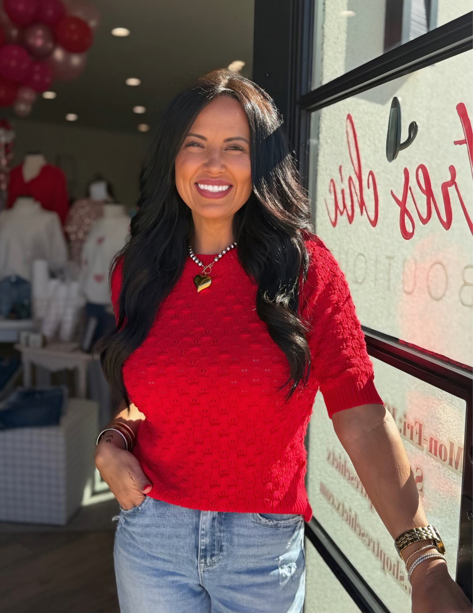 Elevate your casual rotation with this charming crochet cotton crew neck sweater in rich red. Crafted from 100% breathable cotton, it features delicate textured crochet embellishments that add visual interest without the weight. The ribbed crew neckline and short sleeves keep things polished, while the lightweight construction makes it perfect for layering or wearing solo. A wardrobe essential that feels as good as it looks.