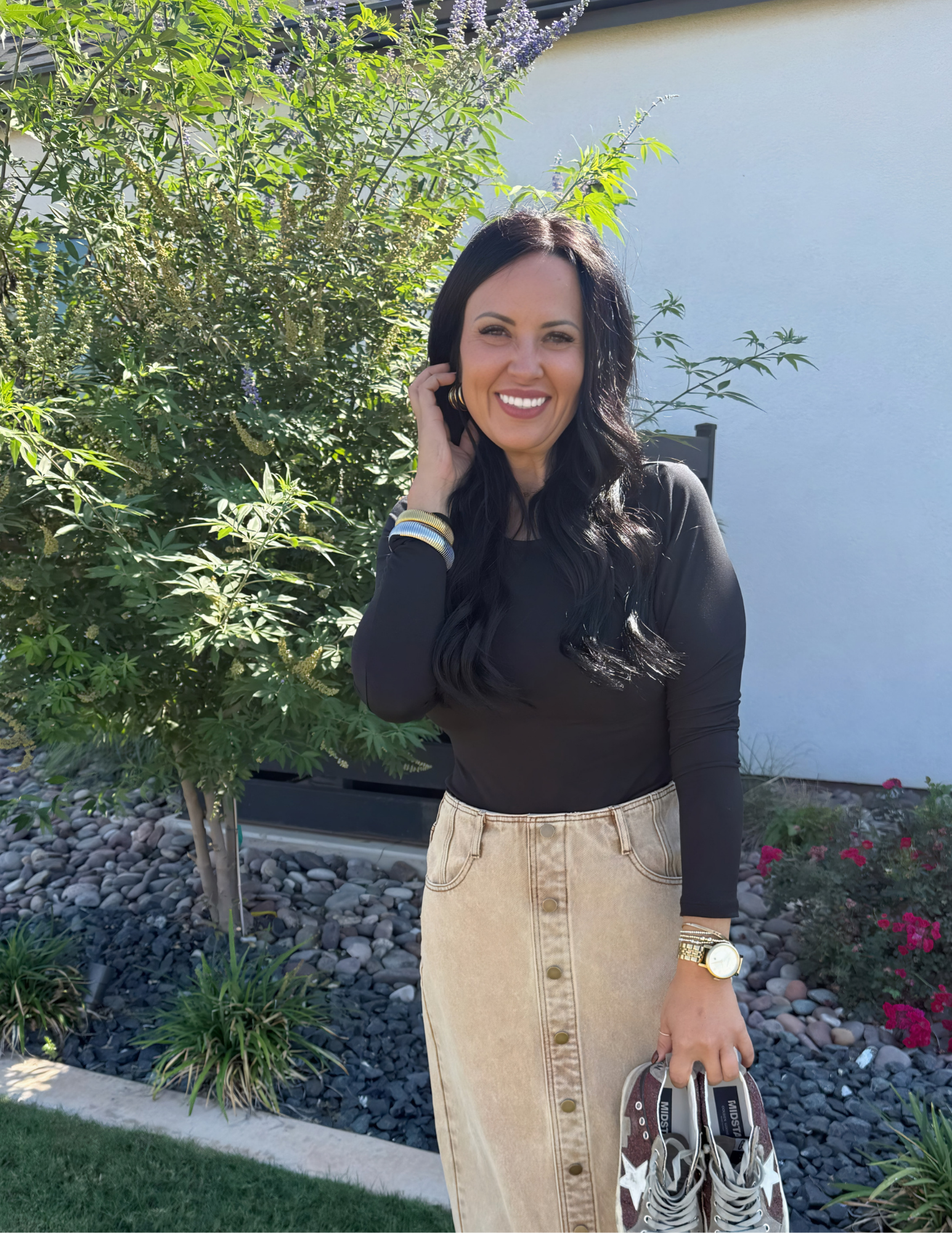 Slip into effortless style with this DTY Long Sleeve Bodysuit in classic black. Crafted from soft, stretchy DTY knit fabric, it hugs your shape with a flattering fitted fit. The round neck and long sleeves add sleek coverage, while the snap button closure at the bottom keeps everything in place for easy wear. Perfect for layering or rocking on its own, this bodysuit makes everyday fashion feel fun and fuss-free!