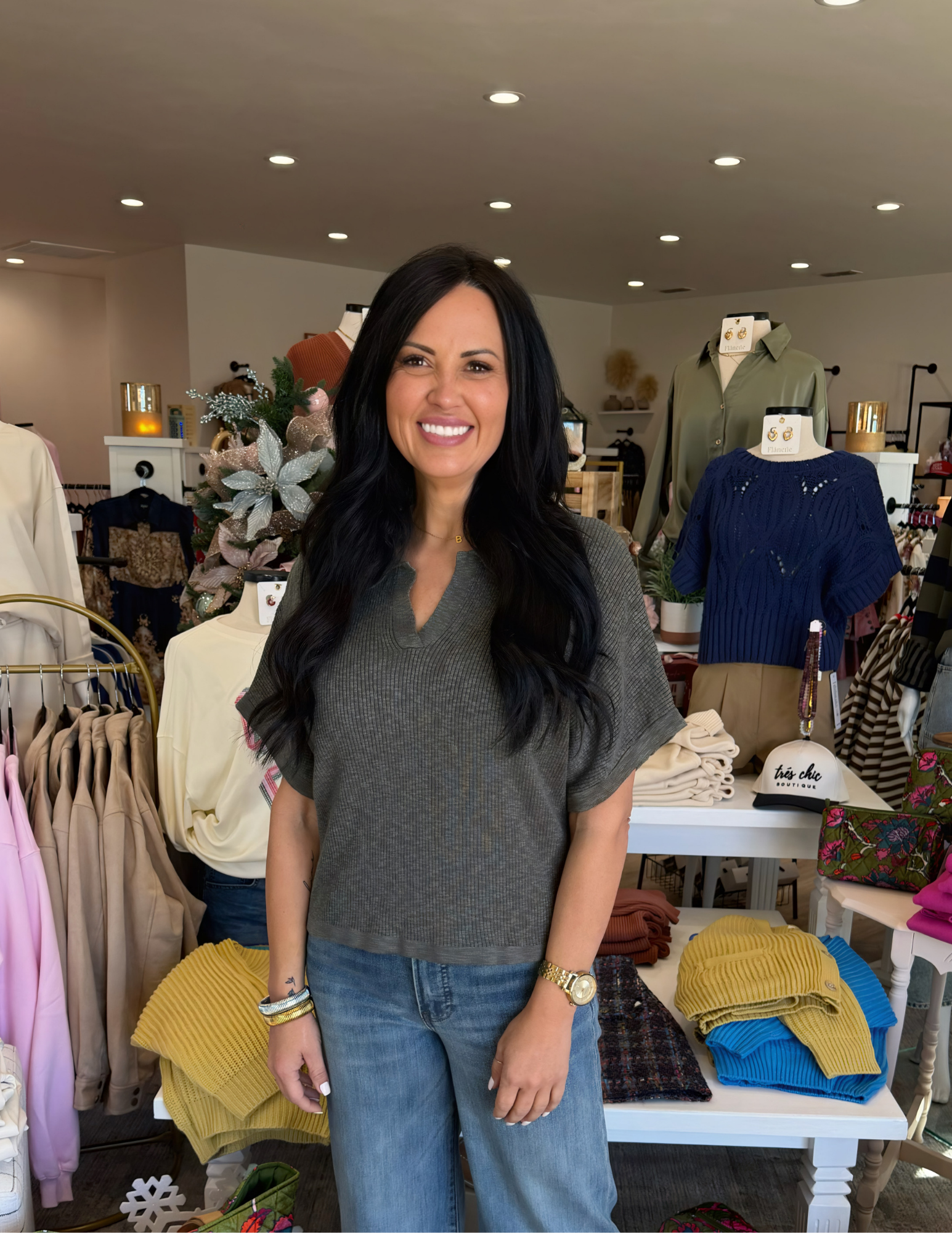 Meet your new go-to sweater! This collared slub rib knit in dusty olive is the definition of "I woke up like this" chic. With its split neckline, flowy dolman sleeves, and boxy silhouette, it strikes that perfect balance between put-together and wonderfully relaxed. The cotton-viscose blend keeps things breathable and cozy—ideal for those in-between seasons when you can't decide if it's still summer or finally fall. Dress it up with tailored trousers, throw it over a romantic skirt, or keep it casual with your favorite jeans. One sweater, infinite possibilities.