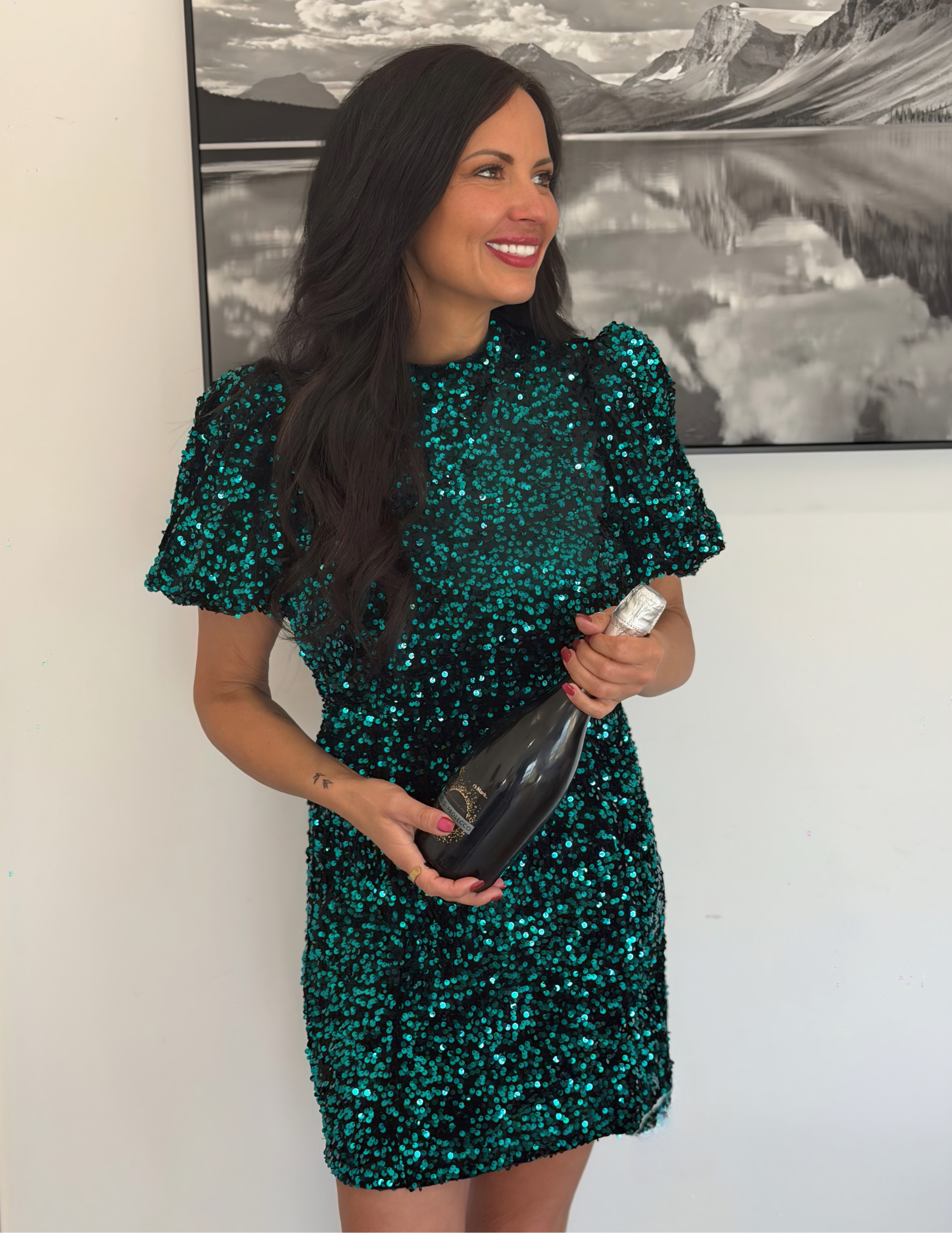 Slip into pure glamour with the Karlie Emerald Sequin Open Back Dress—your secret weapon for stealing the spotlight at any formal occasion. Those eye-catching sequins catch the light with every move, while the dramatic open back and statement puff sleeves deliver major sophistication. Whether you're dancing the night away or making a grand entrance, this dress promises to turn heads and boost your confidence. Emerald never goes out of style.