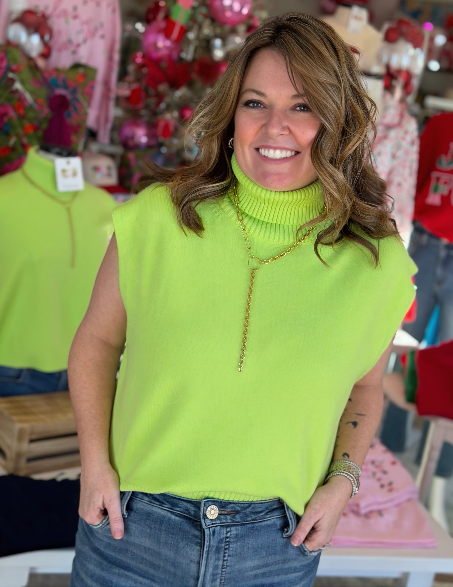 Elevate your layering game with the Karlie Turtleneck Sweater in a stunning citrine hue. This sleek, solid sleeveless design pairs effortlessly with long-sleeve tops for dimension or stands alone as a chic statement piece. The timeless turtleneck silhouette offers a polished look that transitions seamlessly from casual weekends to office-ready styling. Perfect for building a versatile wardrobe that works as hard as you do.