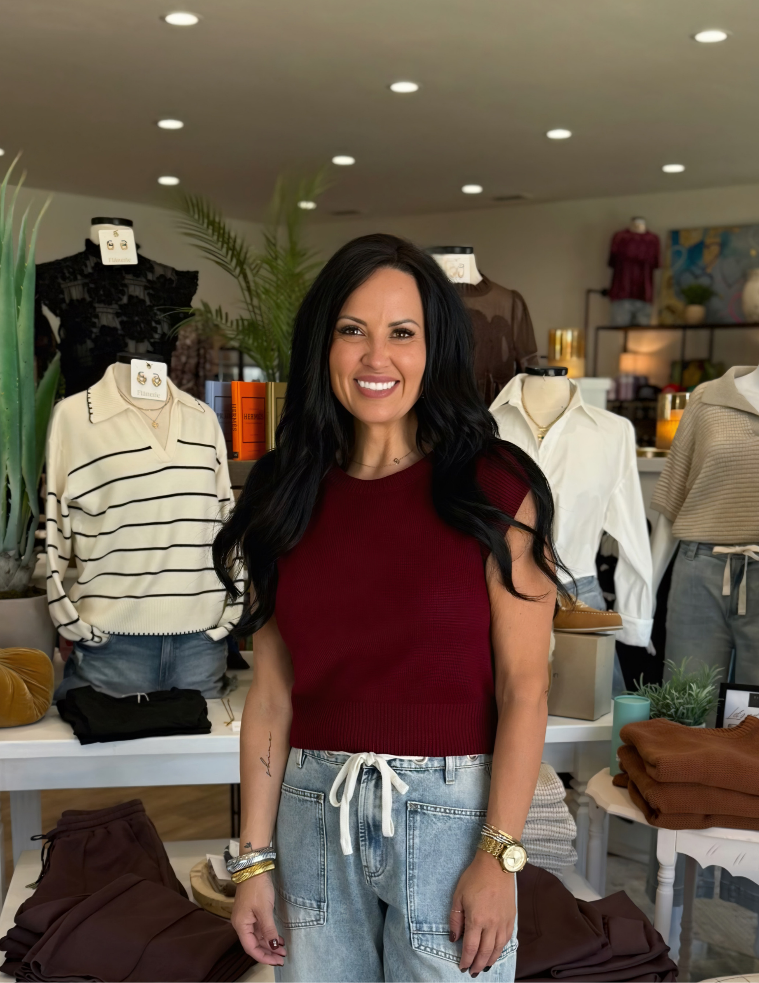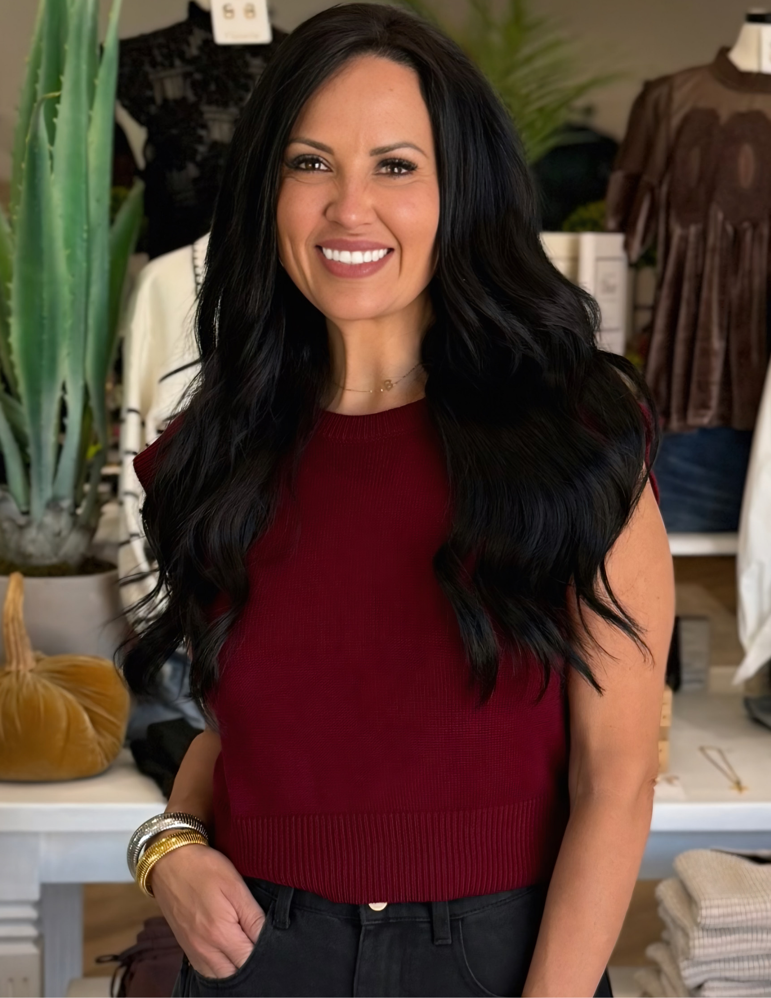 Stay comfy and stylish in this Knit Cap Sleeve Top in a rich garnet shade. Featuring playful cap sleeves and a flattering round neckline, it’s ribbed at the hem and sleeves for a snug, cozy fit. Perfect for mixing and matching with your favorite bottoms to brighten up any day!