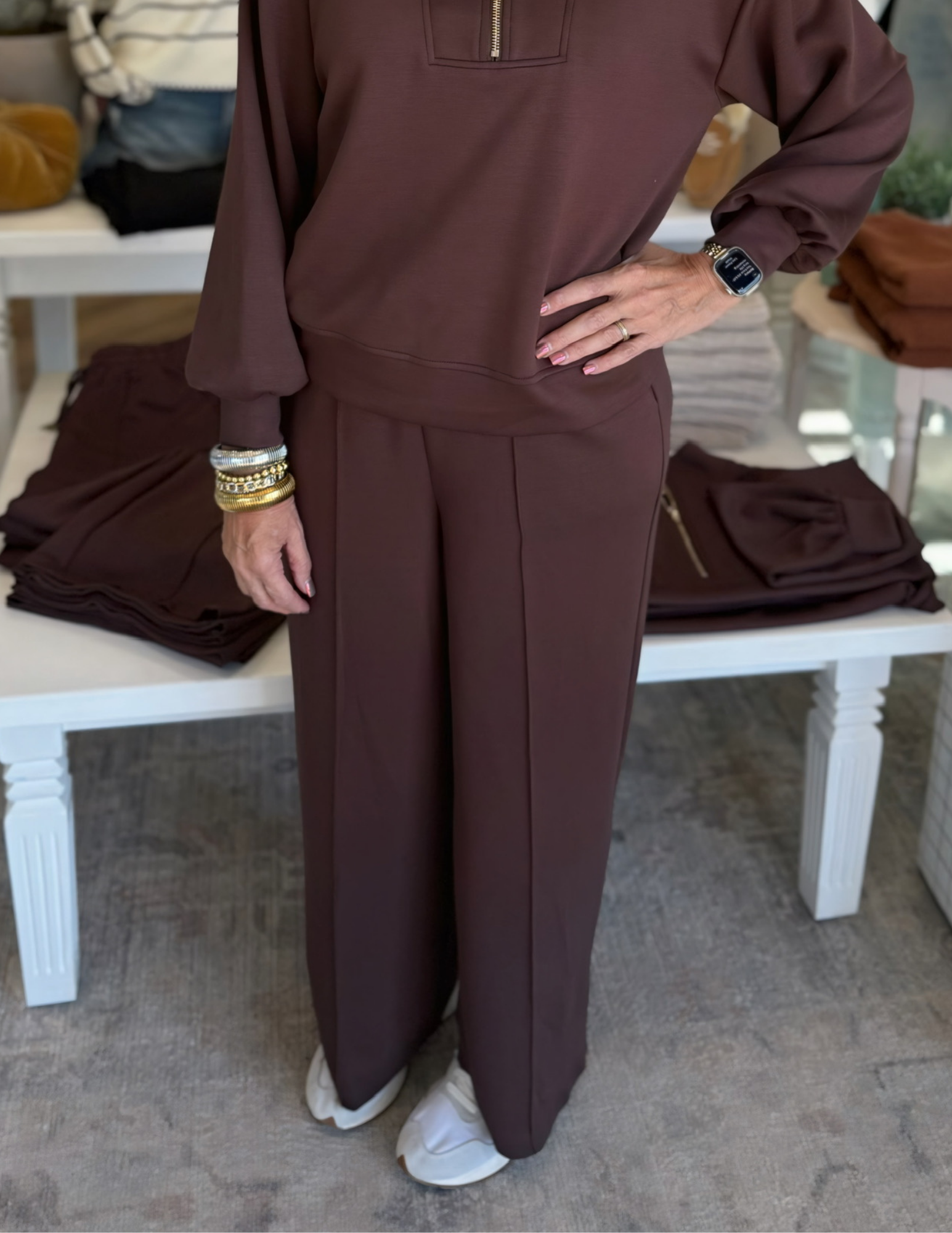 Step into cozy confidence with these Knit Draw String Pants in rich Espresso. Featuring a comfy elastic waist with a playful drawstring, these wide-leg pants flow effortlessly with a chic front seam detail. Lightweight and non-sheer, they're perfect for lounging or dressing up with ease. Plus, handy side pockets keep your essentials close!