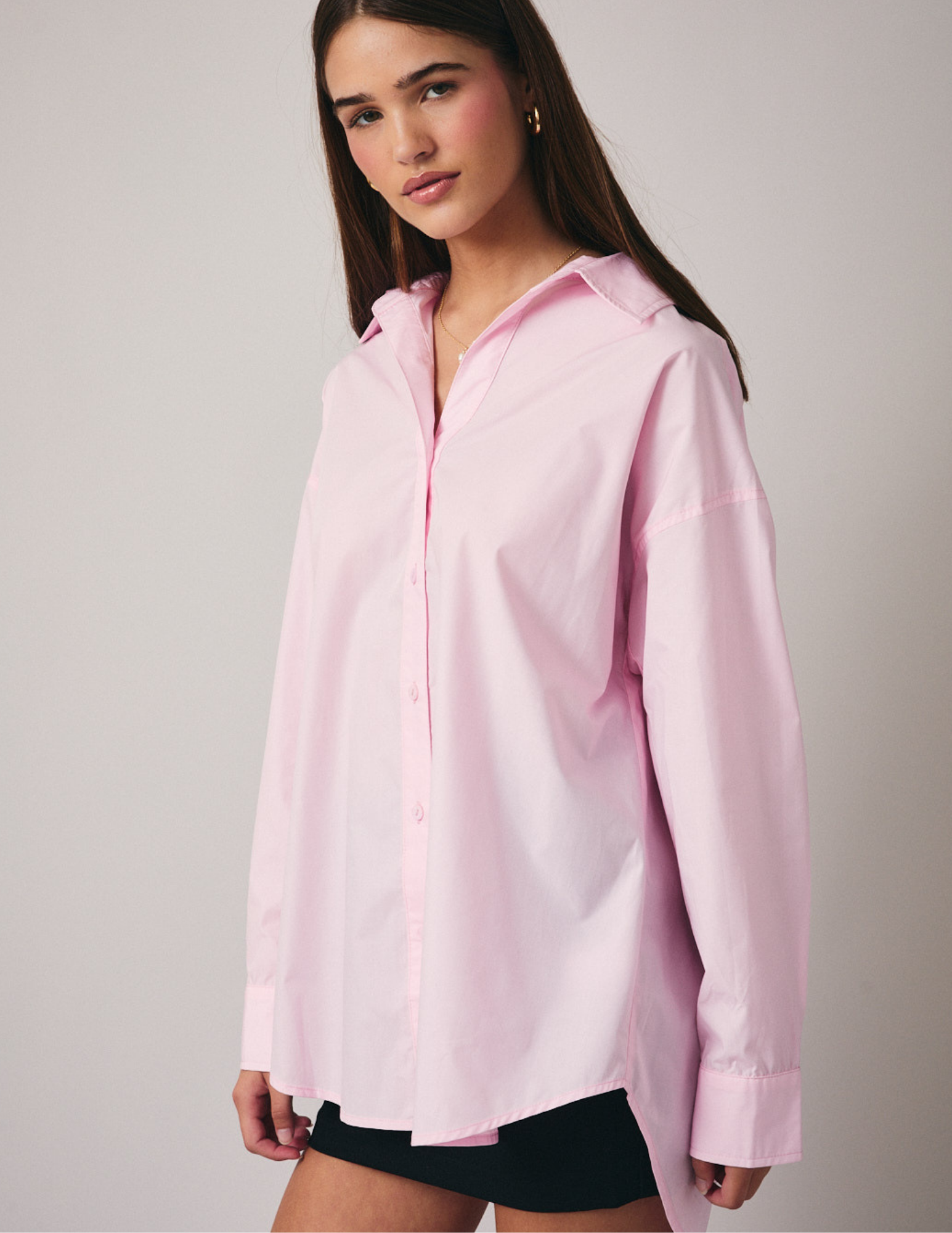 Effortlessly chic and undeniably comfy, this long sleeve overfit shirt in soft baby pink is your new go-to layer. The relaxed, oversized fit pairs perfectly with everything from fitted basics to flowing skirts, while the classic button-up collar and full sleeves add that polished touch. Throw it on solo or style it open over a tee—this versatile piece works as hard as you do.