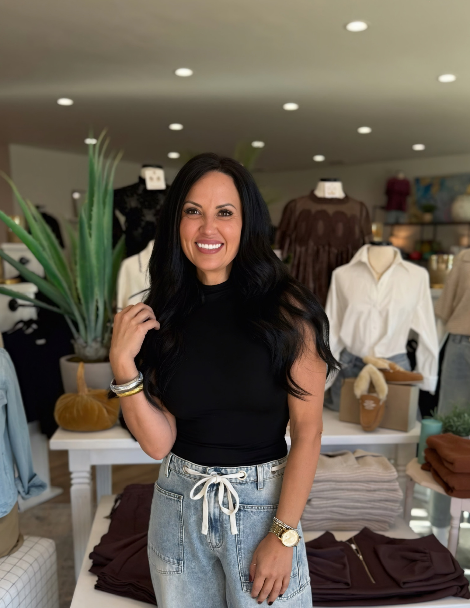 Elevate your style with this playful black mock neck bodysuit. Featuring a flattering sleeveless design, button closures, and a chic keyhole detail on the back, it combines sophistication with a flirty twist. The thong bottom with snap buttons ensures a smooth, comfortable fit that stays in place all day or night. Perfect for layering or wearing solo, this bodysuit adds a sleek, confident edge to any outfit.