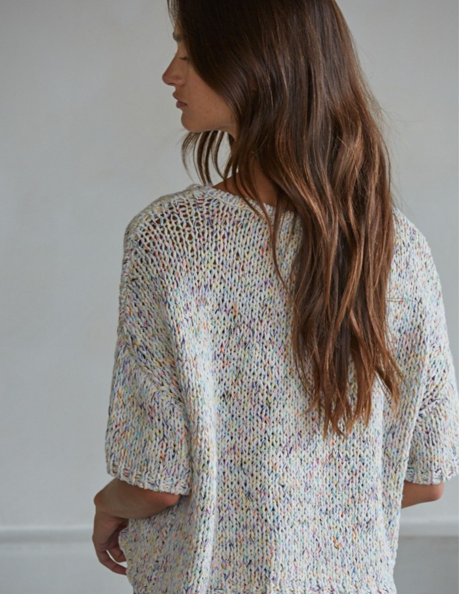 Sprinkle some fun into your everyday wardrobe with this charming Oatmeal Confetti Sweater. Crafted from a cozy blend of cotton, polyester, and acrylic, this short-sleeve knit top features a cheerful confetti pattern that adds a pop of personality to any outfit. The classic round neckline and relaxed fit make it perfect for casual days, weekend hangouts, or layering when the temperature drops. Soft, breathable, and effortlessly stylish—your new go-to piece awaits.