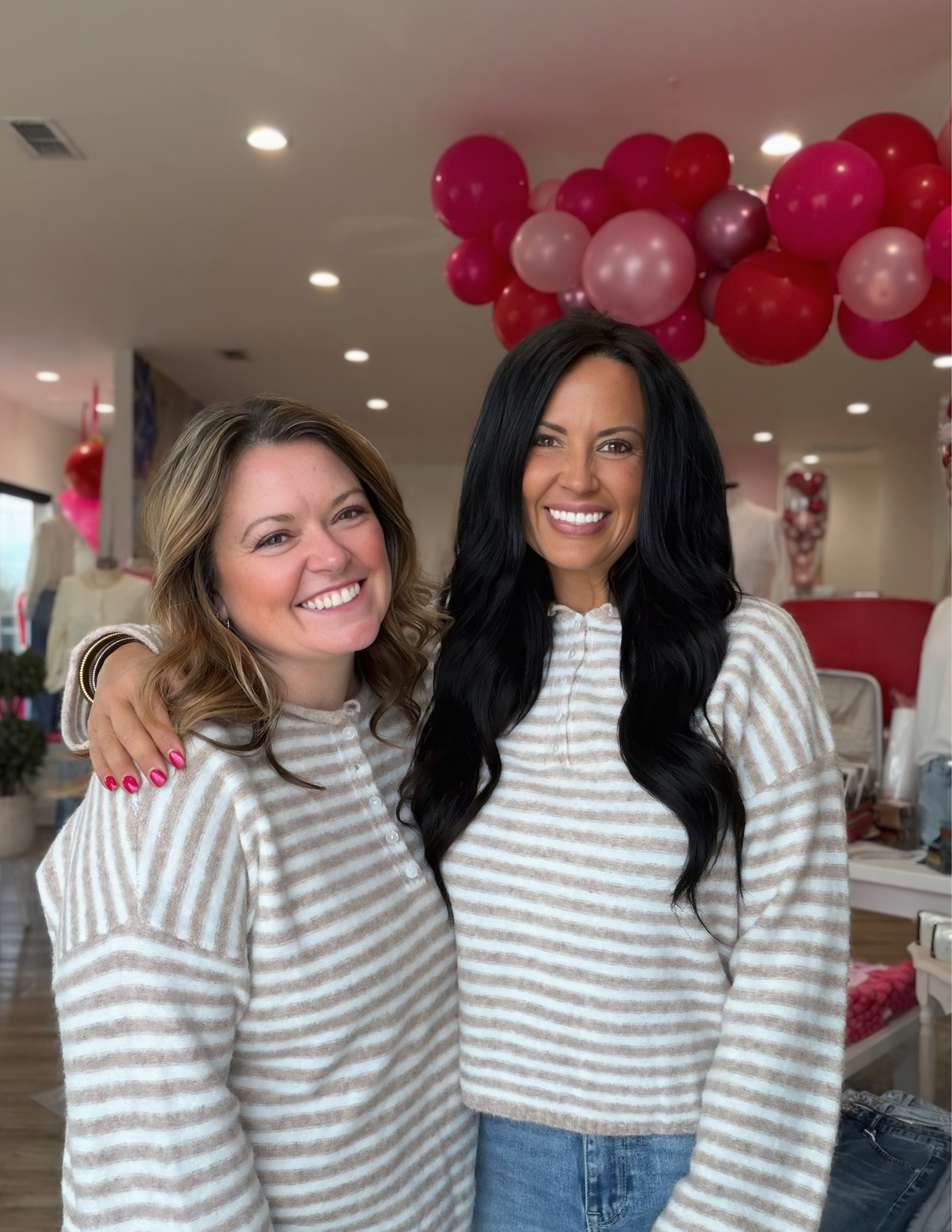 Effortless layering meets cozy comfort in this striped pullover sweater. Crafted from soft knit fabric in oatmeal with horizontal pink and grey stripes, it features a charming Henley neckline with button placket and relaxed drop shoulders for that just-right casual vibe. The slightly cropped hemline pairs perfectly with high-waisted bottoms, while the relaxed fit makes it ideal for throwing over your favorite tee or wearing solo. Your new go-to piece for laid-back style.